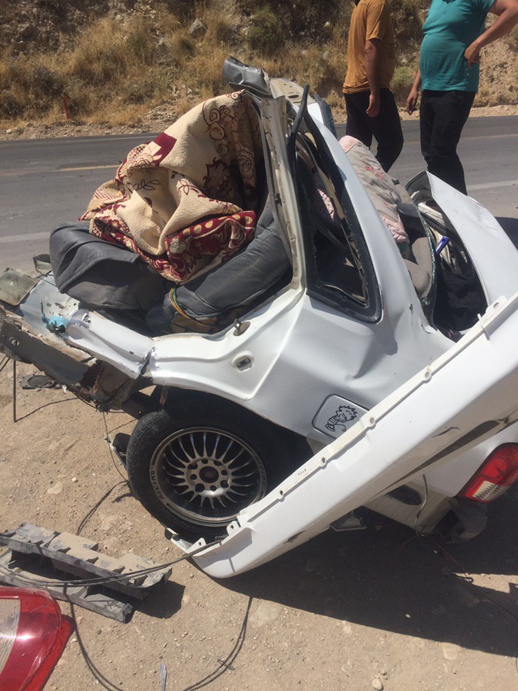 در این سانحه رانندگی که در نحور باشت به رستم نورآباد روی داده شدت تصادف به حدی بوده که خودروی پراید به شکل بسیار وحشتناکی از بین رفته است.