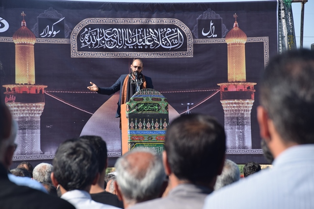 به گزارش خبرآوران ظهر امروز و همزمان با سراسر کشور مردم متدین و انقلابی گچساران با برپایی هیئتهای مختلف عزاداری اباعبدالله الحسین(ع) با حضور در گلزار شهدای این شهرستان به عزای مریدشان حسین(ع) پرداختند.امروز ظهر گچساران حال و هوای عاشورا به خود گرفته بود و عزاداران و مردم همه به عشق حسین(ع) آمده بودند؛ موکبهای مختلف در هنگاکه برپایی عزاداری و پذیرایی از عزاداران با شربت و آب خنک همچنین گلابپاشی و خنک کردن عزداران همچنین پذیرایی از مردم و عزاداران توسط خانوادههایی که نذریهای خود را در اطراف مکان مراسم برپا کرده بودند از جلوههای خاص ظهر عاشورایی گچساران بود.
