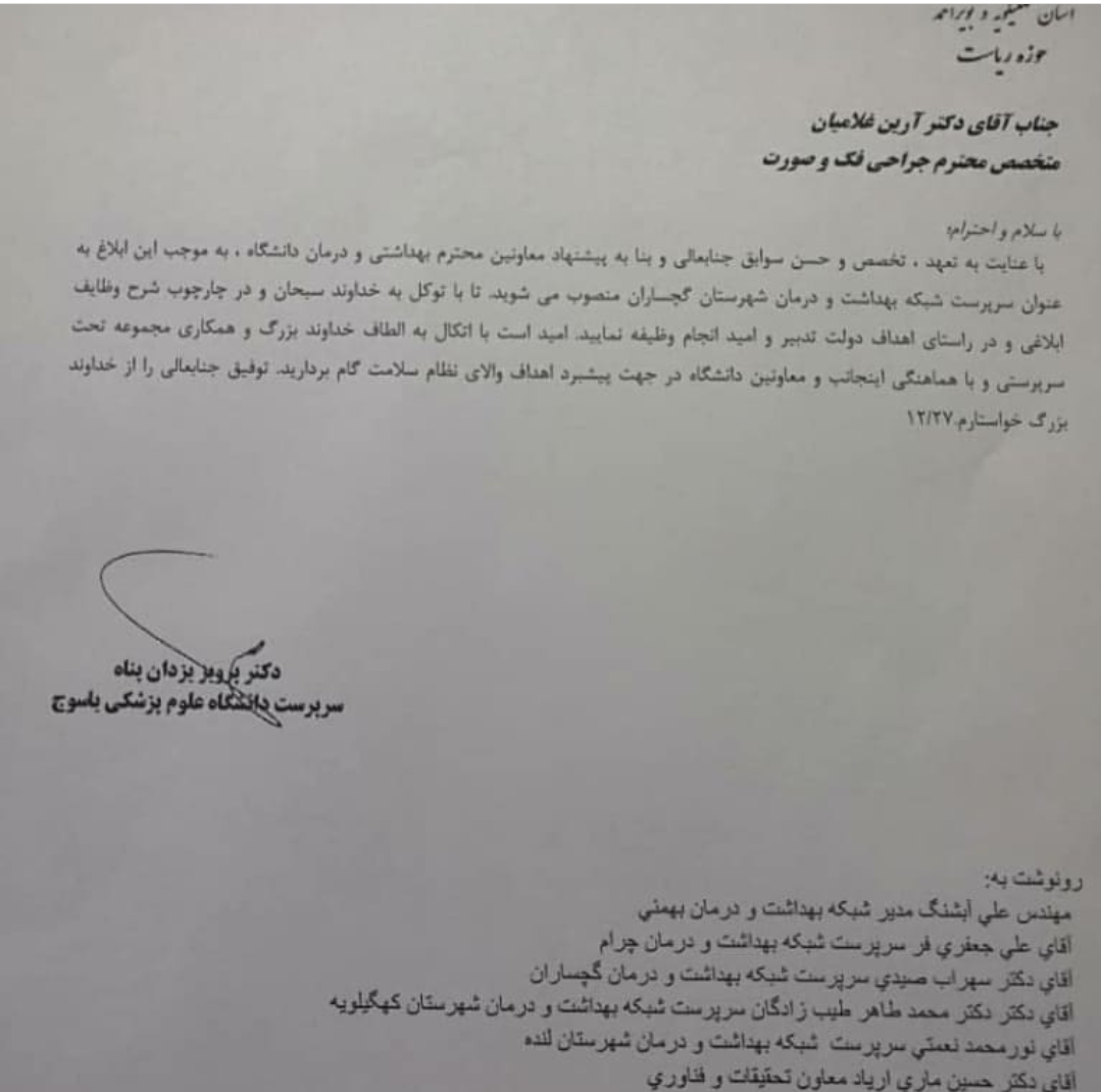 سرپرست جدید شبکه بهداشت و درمان گچساران طی حکمی معرفی شد.