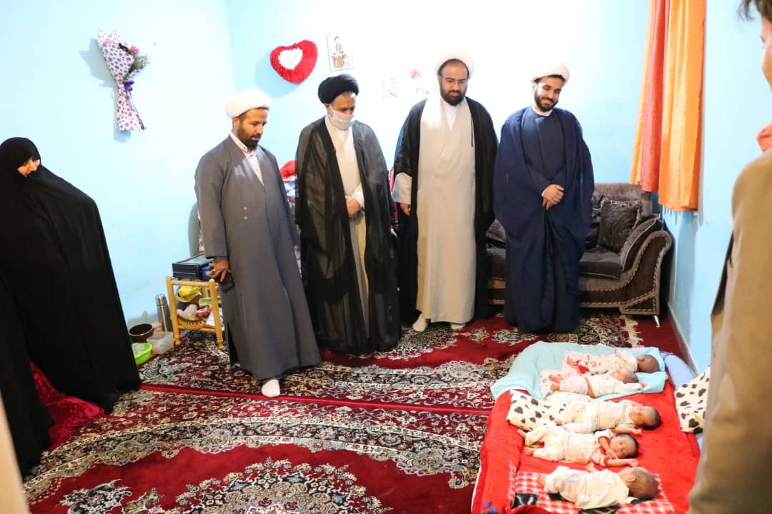 حجت الاسلام حجازی امام جمعه گچساران به همراه چند نفر از روحانیون گچساران با خانوادهای که به تازگی دارای پنج فرزند شدهاند، دیدار کردند.