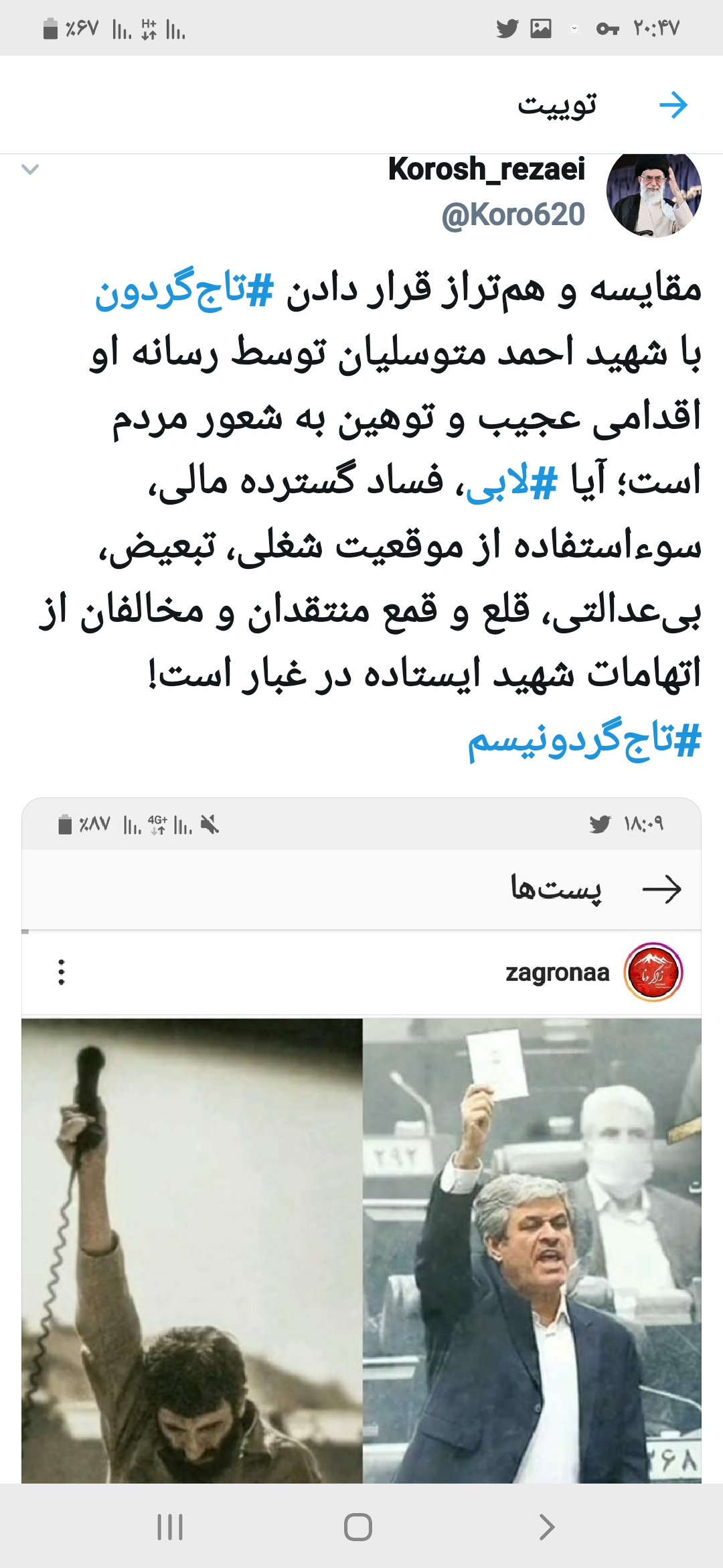 واکنشی به مقایسه تاج‌گردون و شهید احمد متوسلیان
