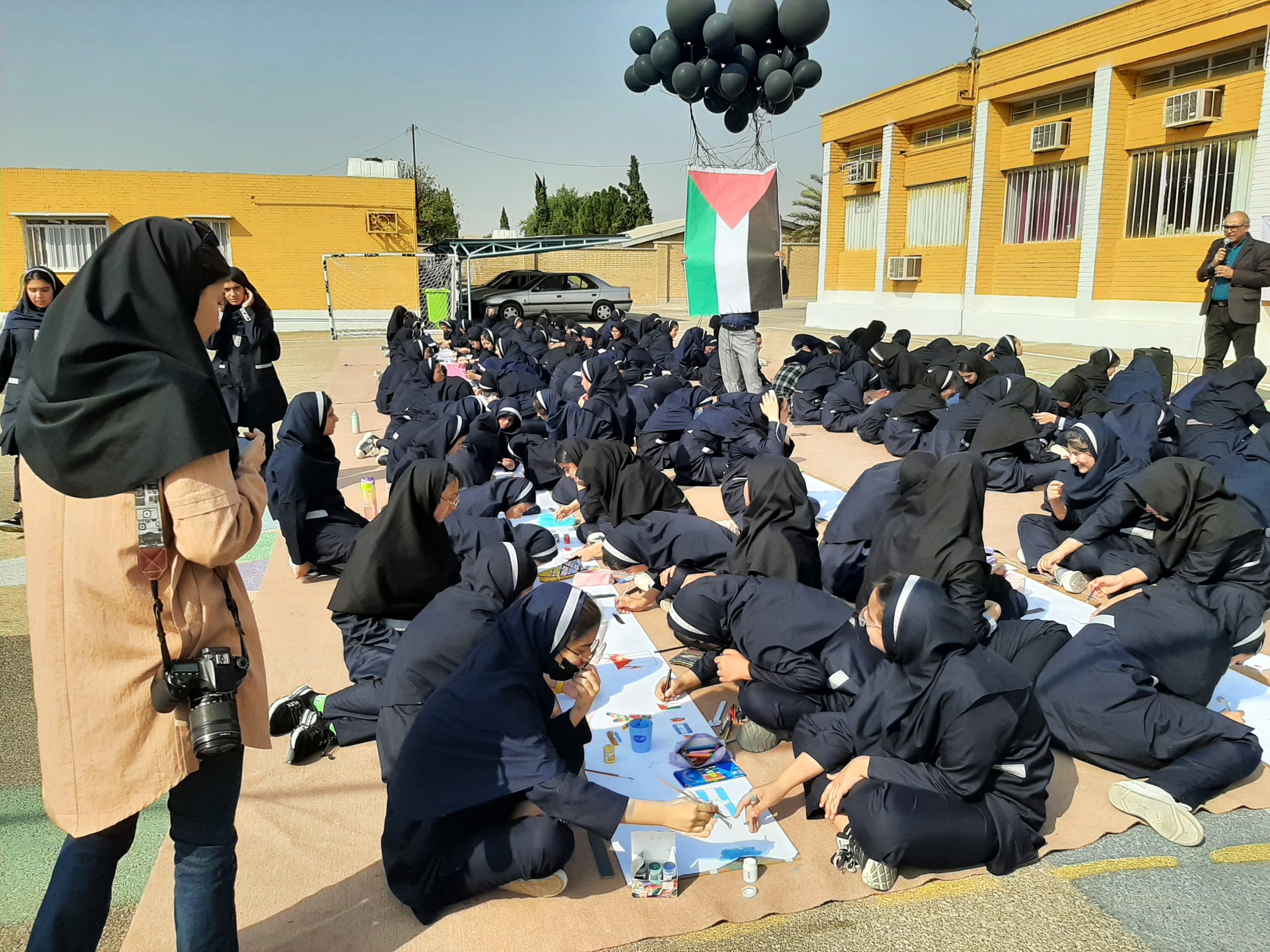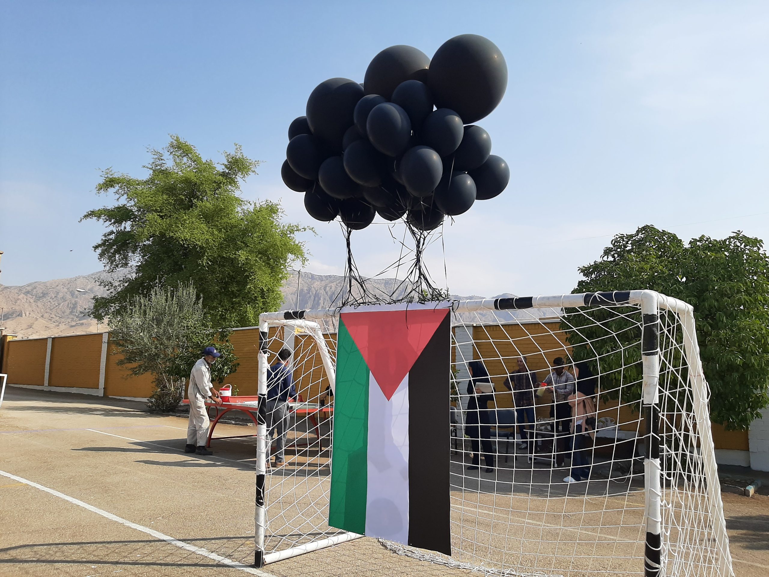 در بخش دیگری از این مراسم پرچم فلسطین با #غزه توسط بادکنکهای سیاه به آسمان رها شد.