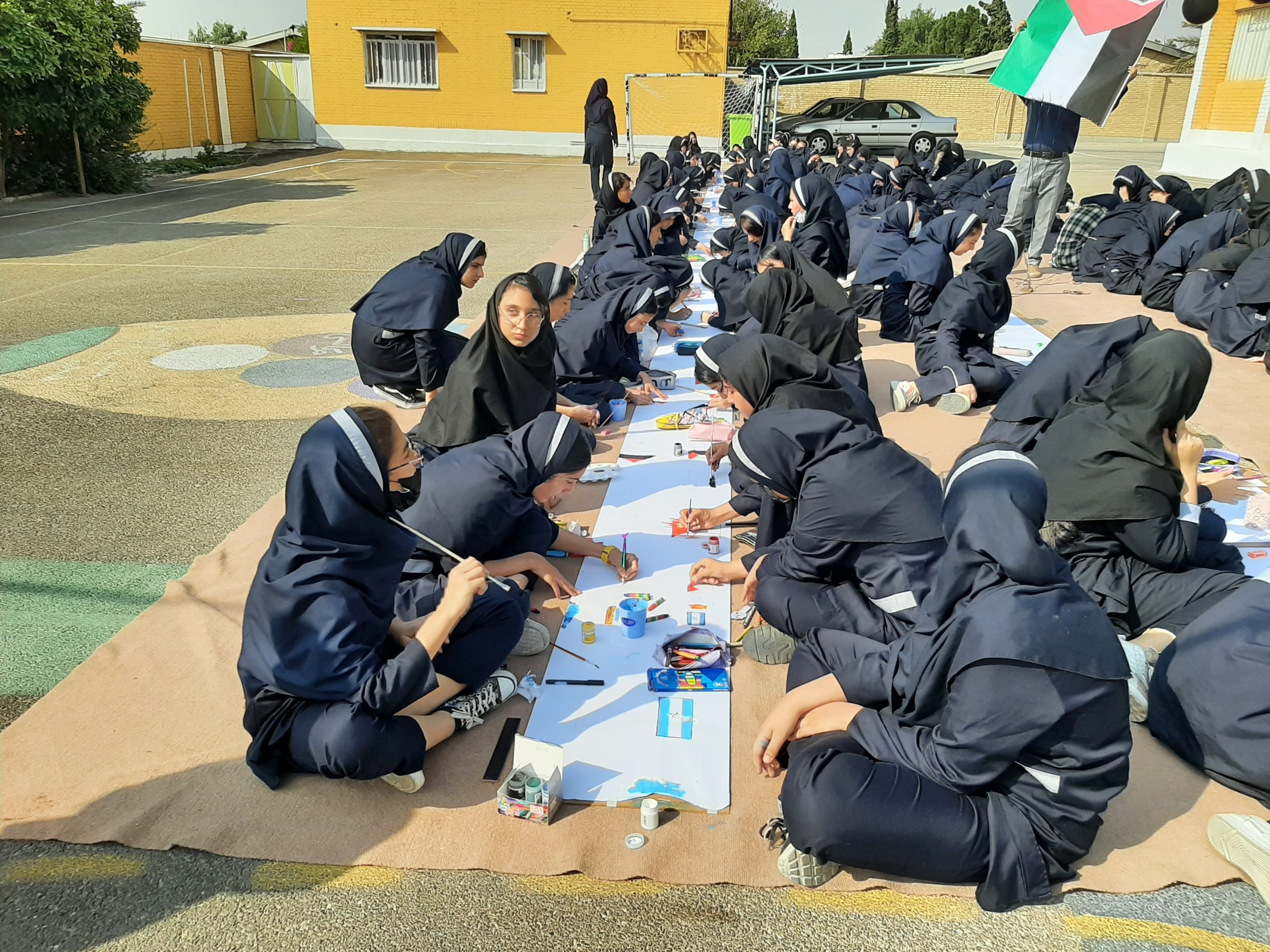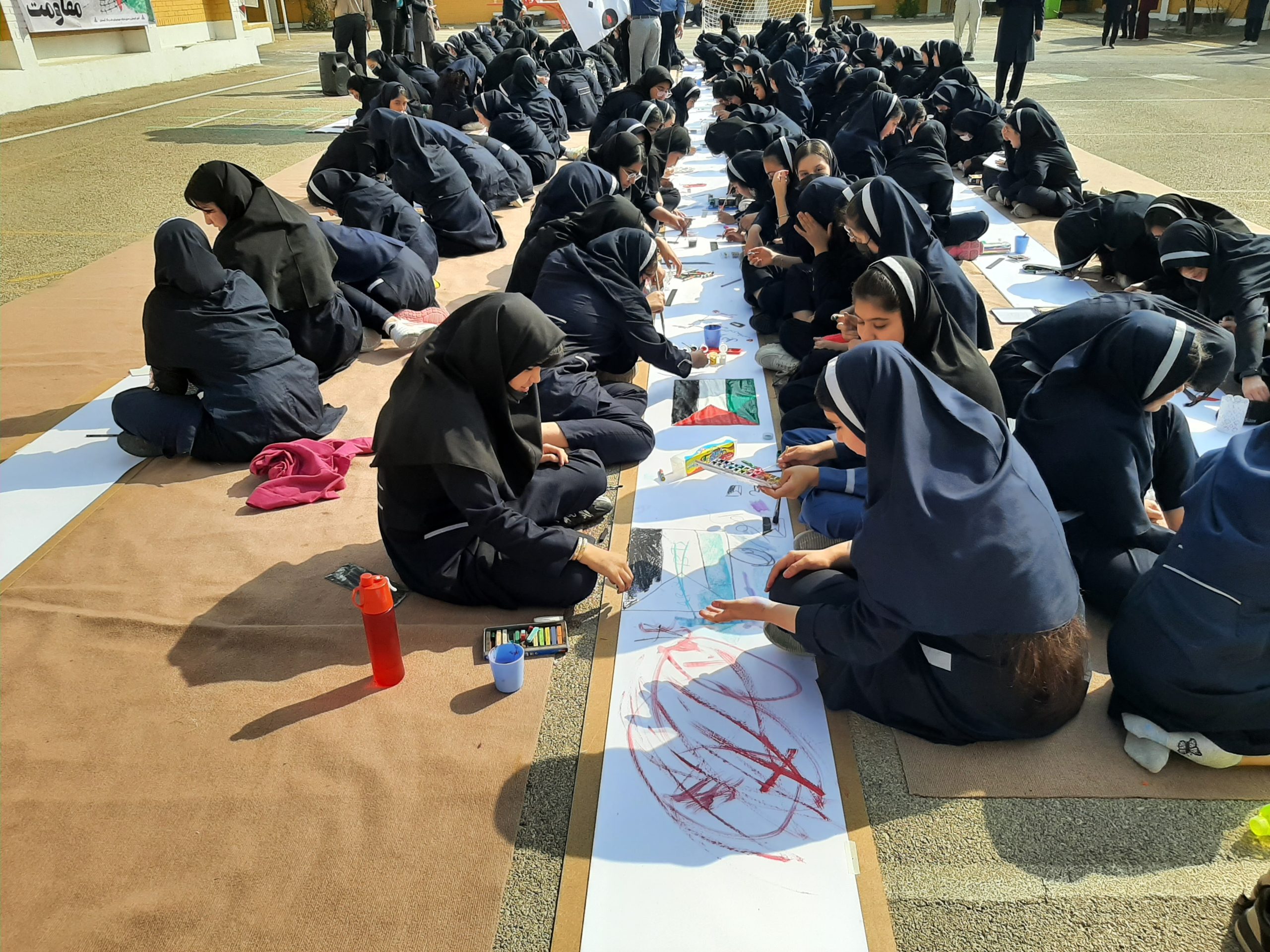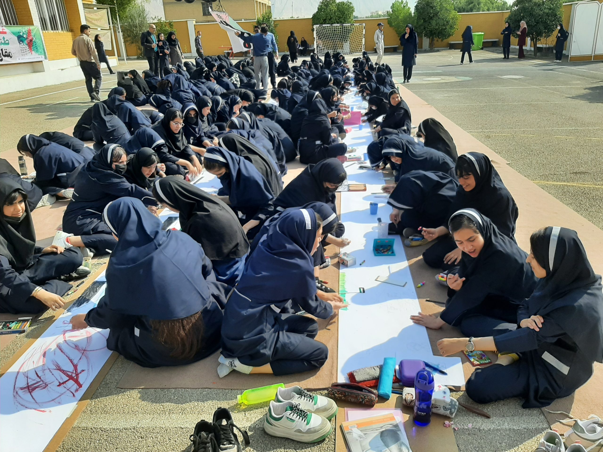 صبح امروز دانشآموزان دبیرستان غیرانتفاعی شهدای صنعت نفت گچساران با اجرای مراسم ایستگاه نقاشی در حمایت از کودکان مظلوم غزه همدردی و همبستگی خود را با فلسطینیان نقاشی کردند، پرچمهای آغشته به خون فلسطین، کودکان شهید و زخمی فلسطینی، گریه و ترس کودکان از جنگ و بمباران و ..سوژه نقاشی دختران دبیرستان غیرانتفاعی شهدلی نفت در حمایت از فلسطین بود.