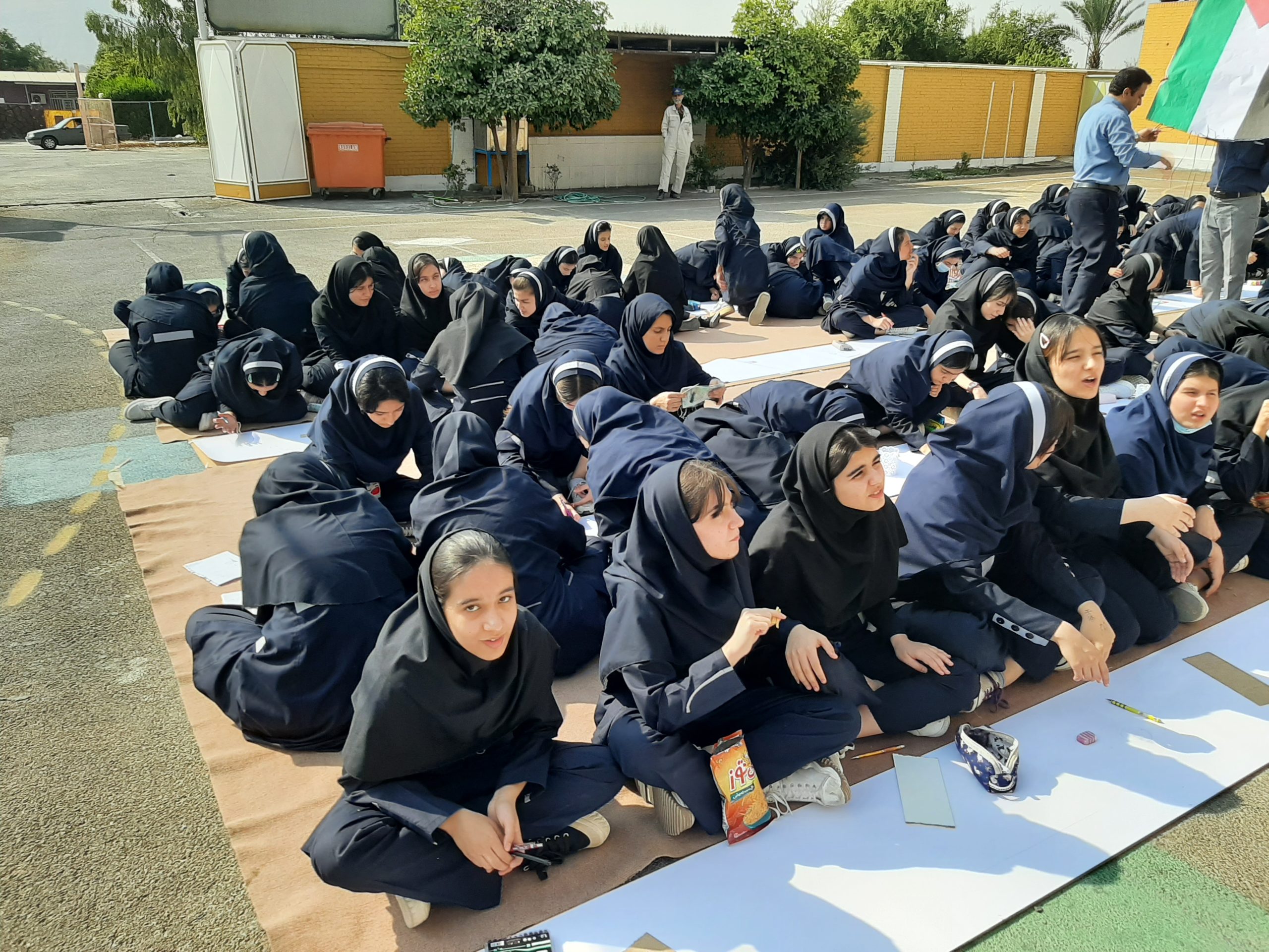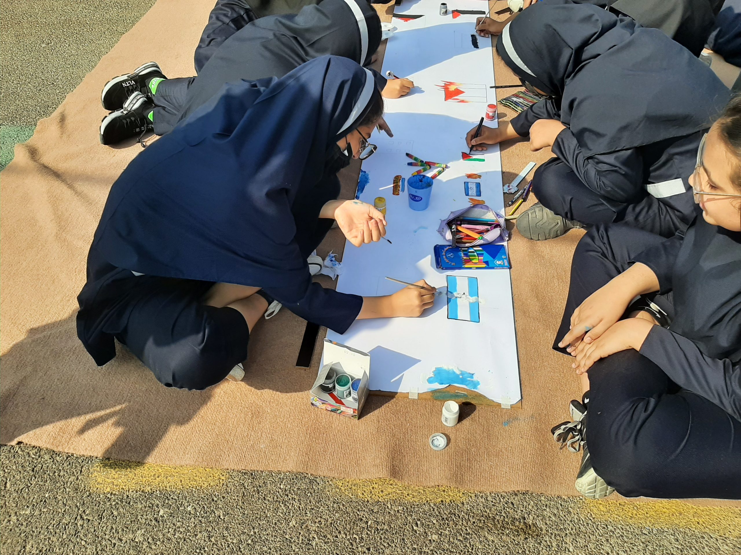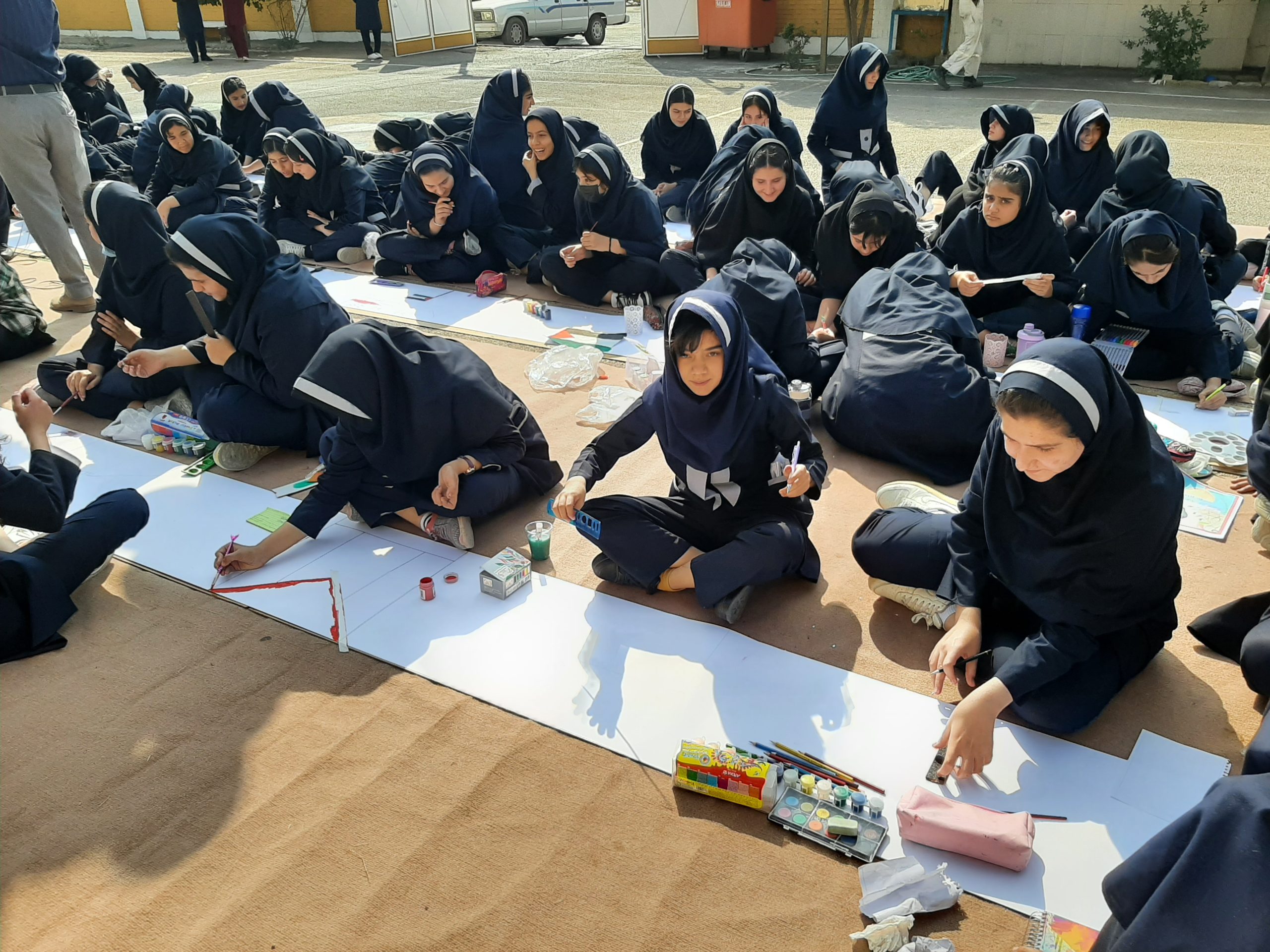 صبح امروز دانشآموزان دبیرستان غیرانتفاعی شهدای صنعت نفت گچساران با اجرای مراسم ایستگاه نقاشی در حمایت از کودکان مظلوم غزه همدردی و همبستگی خود را با فلسطینیان نقاشی کردند، پرچمهای آغشته به خون فلسطین، کودکان شهید و زخمی فلسطینی، گریه و ترس کودکان از جنگ و بمباران و ..سوژه نقاشی دختران دبیرستان غیرانتفاعی شهدلی نفت در حمایت از فلسطین بود.