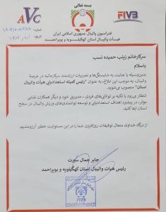 نماینده مربیان بانوان استان در مجمع عمومی سالیانه در هیات والیبال استان – ١۴٠۴، معرفی بهعنوان مربی استعدادیاب جهت انتخاب و راه یابی تیم والیبال استان ک وب به مسابقات کشوری از افتخارات و رزومه کاری این بانوی گچسارانی است.